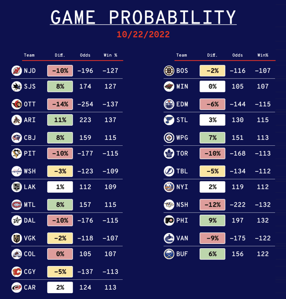During the 2022-23 season, Daily Faceoff will help you become an improved bettor thanks to this betting model and our betting tools.