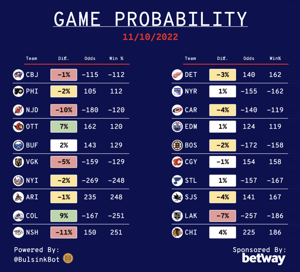 Daily NHL Betting Guide – 11/10/22