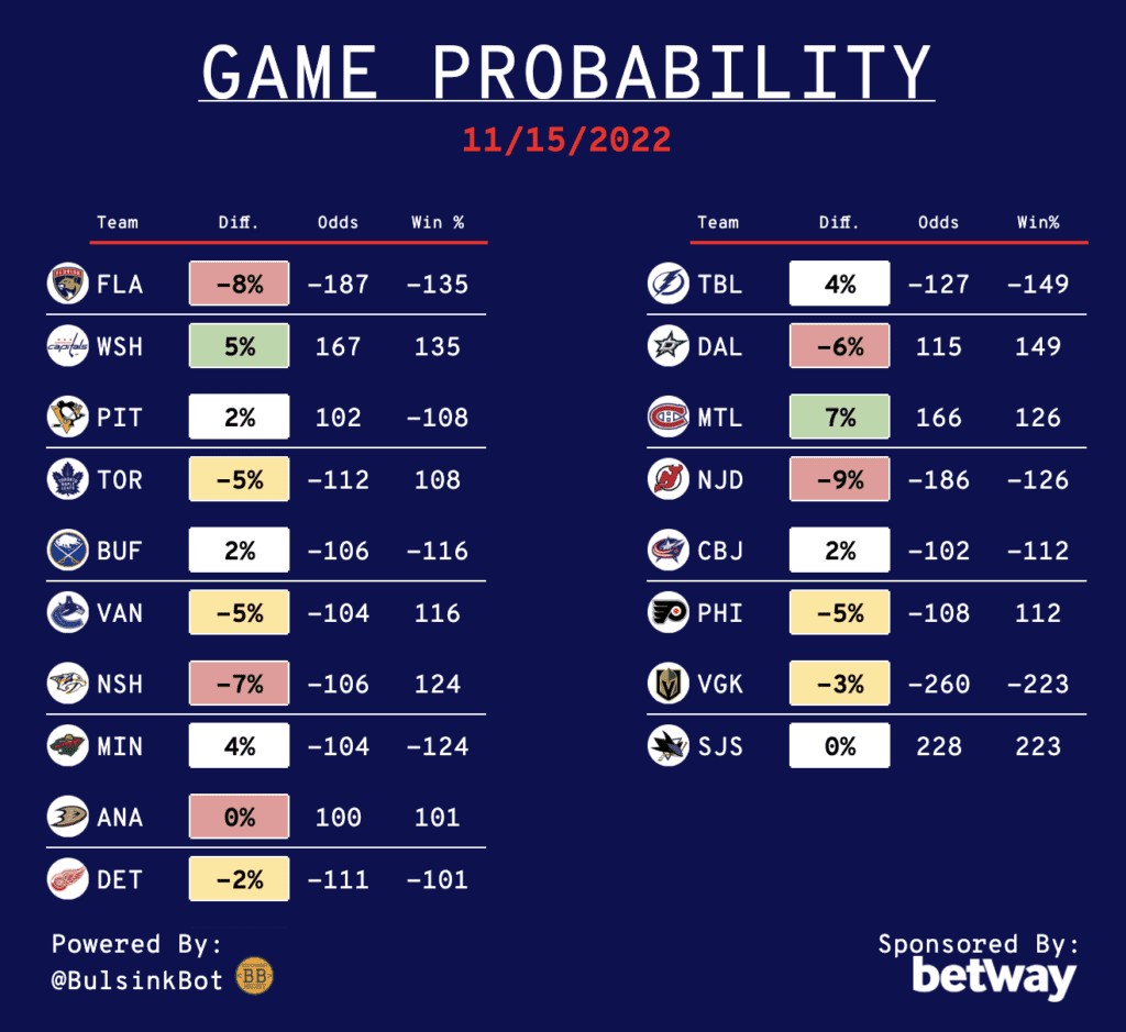 Daily NHL Betting Guide – 11/15/22