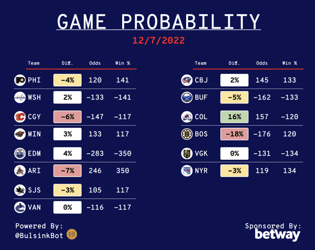 I will also provide some analysis on the best bets and update this post throughout the day to point out big injury news, lineup changes, and backup goalies starting.
