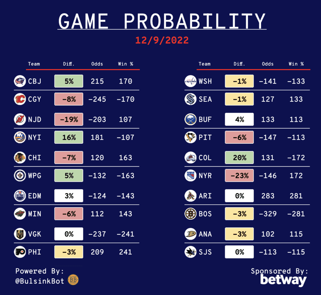 I will also provide some analysis on the best bets and update this post throughout the day to point out big injury news, lineup changes, and backup goalies starting.