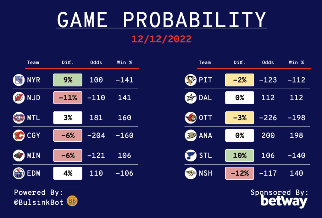 Daily NHL Betting Guide – 12/12/22