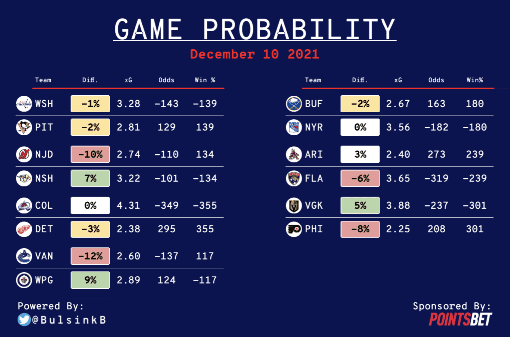 I will also provide some analysis on the best bets and update this post throughout the day to point out big injury news, lineup changes, and backup goalies starting.