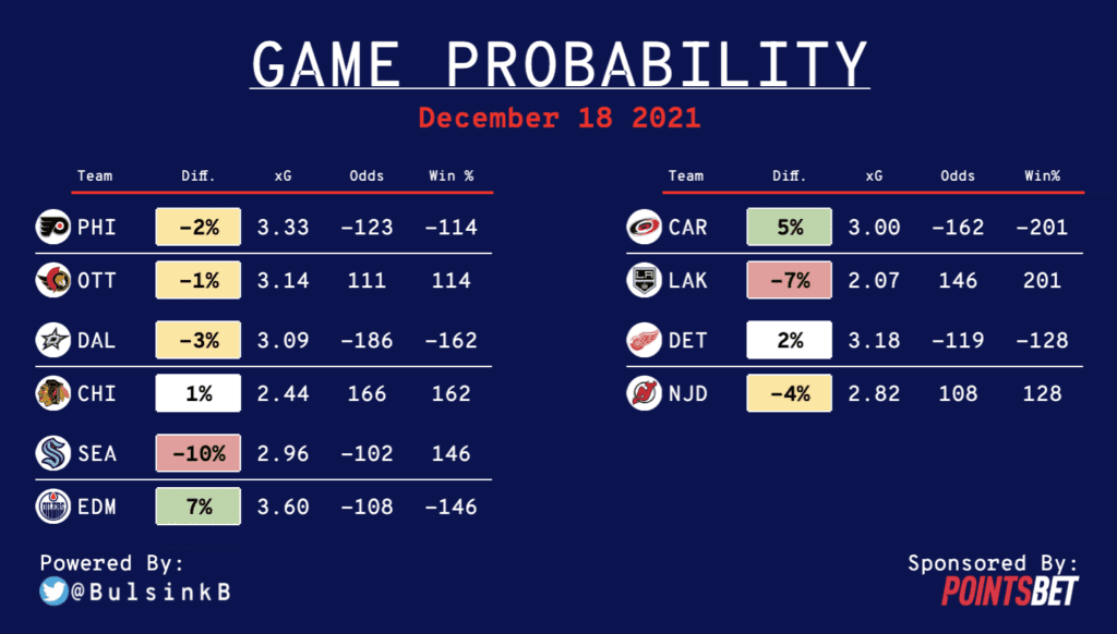 Each day we will look at each game, the Sportsbook Odds (via PointsBet), and the odds of each team winning based on the model created by Philip Bulsink. Based on those two numbers, we can quickly identify which teams we need to bet on, which teams to avoid and which lines to keep an eye on throughout the day.