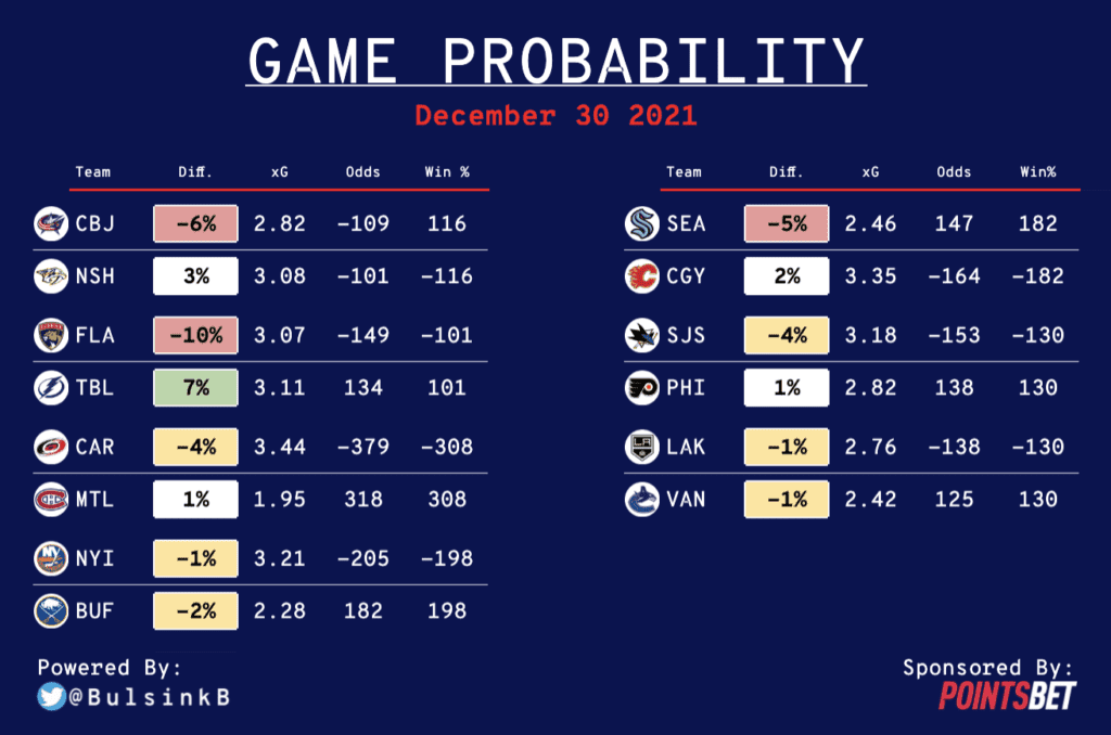 I will also provide some analysis on the best bets and update this post throughout the day to point out big injury news, lineup changes, and backup goalies starting.