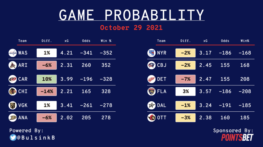 I will also provide some analysis on the best bets and update this post throughout the day to point out big injury news, lineup changes, and backup goalies starting.