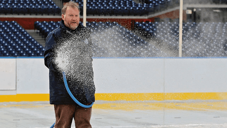 “I looked at Dan and said, ‘That’s not good,’” Collins said, “No it’s not and we will fix it and the ice will be ready for the game, but don’t ever do this to me again. I know exactly what we need if we are going to do this again. I’ll lay it out for you.” Then he told me to get off his ice that he had another 48 hours of work to do,” Collins added.