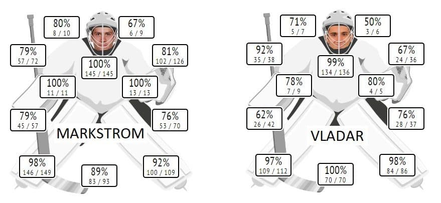 Here’s the good news: Markstrom doesn’t have a weakness to his blocker or glove side. So it’s not as if opponents are tearing him to shreds in a certain location.