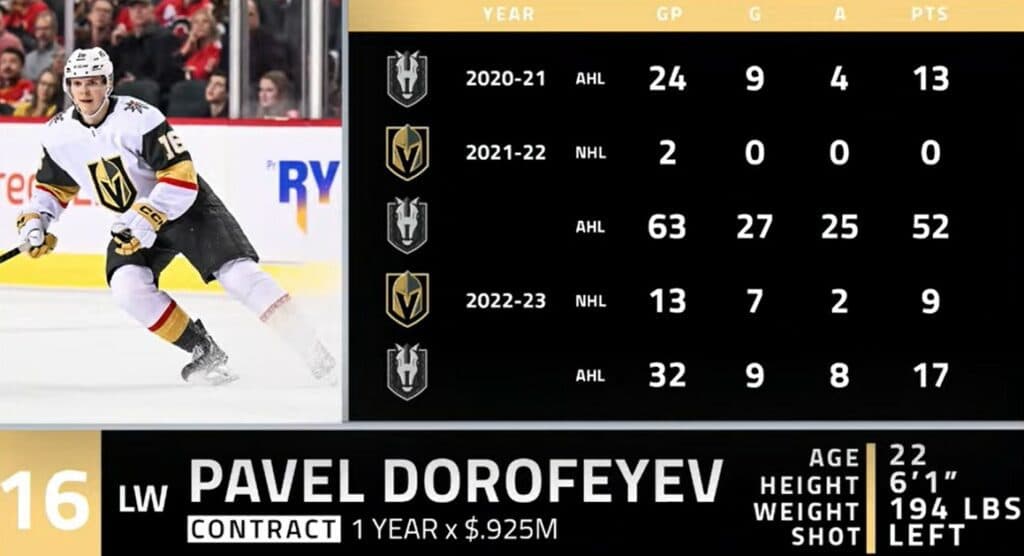 Dorofeyev is a homegrown player, he’s a 5th-round draft pick. Last season in the AHL he had 27 goals. That is a big number for a 21-year-old. He needs to play with good players; he’s been with Karlsson and Smith and he’s responded.