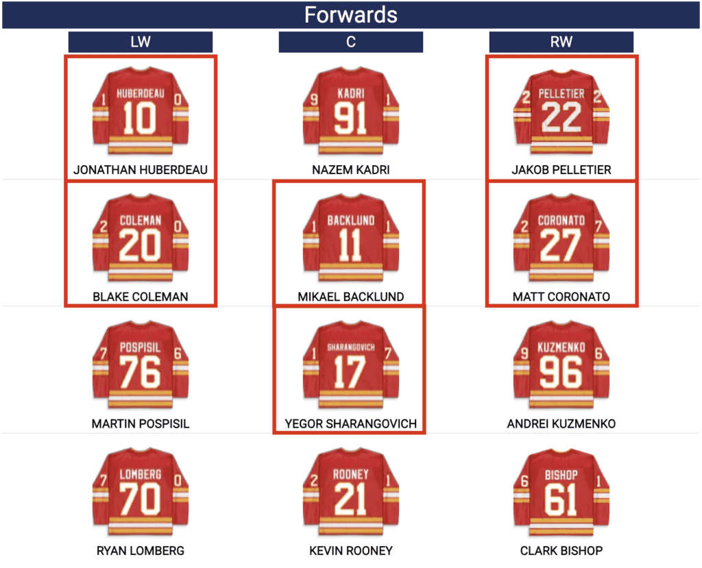 The Flames are a heavy focus this week because they have by far the best schedule overall and almost their entire forward group is available on the waiver wire. Their week starts off with a difficult matchup vs. the red-hot Logan Thompson, but gets much easier from there with meetings vs. Anaheim, Detroit and Seattle.