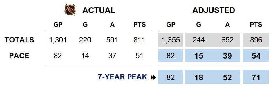 No one will confuse Gonchar with Chara on the defensive side. But that’s true of the bulk of modern HHOF defenders. To appreciate the depth of Gonchar’s production, here are some of his offensive feats, adjusted to era: