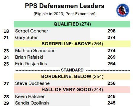 To put Gonchar’s career in context, we’ll reveal the modern PPS leaders among eligible HHOF defensemen. These are the players most deserving of a chance to visit their tailor for a November 2023 tuxedo fitting ahead of induction weekend.