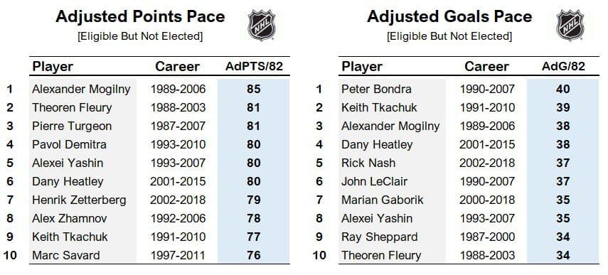 So, to answer the question, it’s not that the HHOF has overlooked a generation just yet. But rather the generation debuting in the 1980s is wildly overrepresented. If making a case for a forward that debuted before 1987, you could easily find a dozen more deserving recent players.