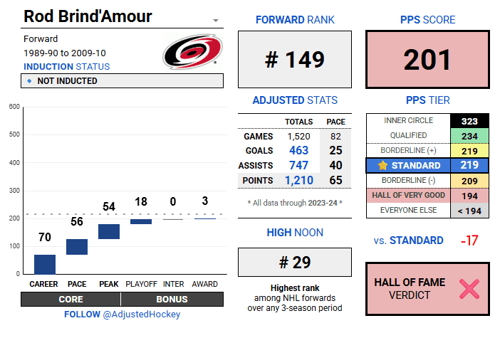 Will He Ever Be Inducted?: Yes. I’m betting the Committee eventually blurs its own rules and elects Brind’Amour as a Player despite a wobbly case. In my view, there needs to be a method to reward this rare type of dual hockey life that touches both categories.