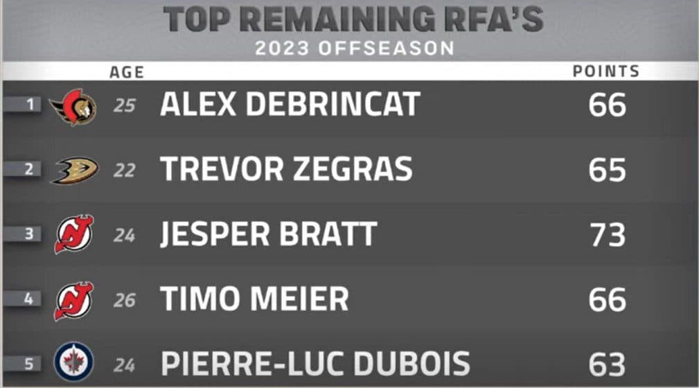 Mike McKenna: I think Timo Meier is going to be the one to watch. It’s interesting the Devils have two people on this list with Bratt and Meier; could they possibly keep both, or will it turn into an either/or? Jesper Bratt’s had two really strong years in a row. His goal production went up to 32 snipes last year. Is he going to be an $8 million guy? It’s worth asking that. I’m not sure, but it’s going to be close.