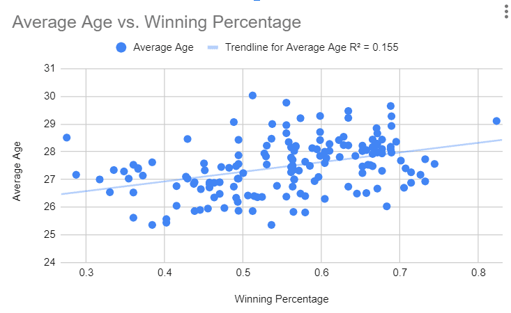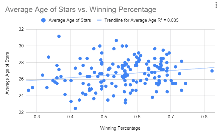 However, element that hasn’t been quantified yet is the impact of age, experience and leadership on a team. It’s often talked about as a valuable part of building a team and is very essential to winning. In theory, you want to have players who have experienced the highs and the lows of a season and can guide the rest of the team through those moments, as well as teach the younger players how to be better at the sport.