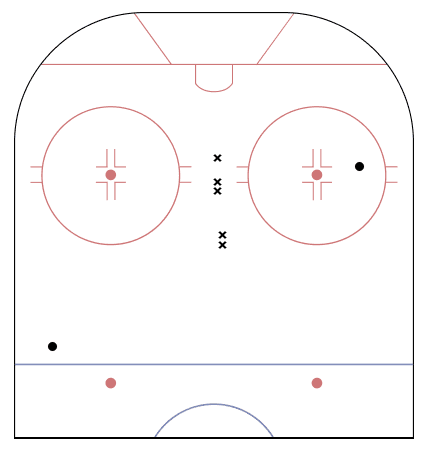 One player that has been able to find middle ice is Jonathan Marchessault. But he’s not hitting the net. Every “x” on the image below represents a shot going wide.
