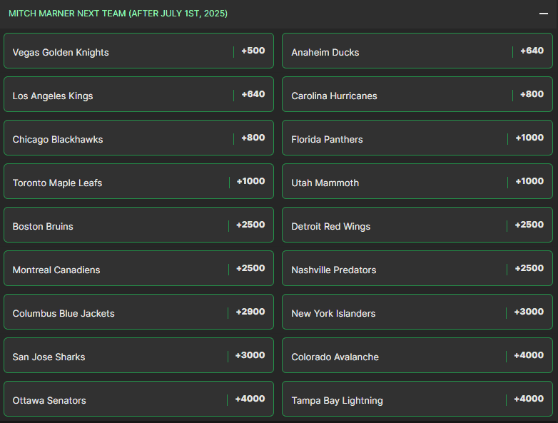 The Carolina Hurricanes are currently priced as the betting favorites to win the 2025-26 Stanley Cup at +700, just a tick shorter than their price to land Marner. While the average hockey fan is not likely to agree with those odds, they are very well-situated for the future and an offensive star of Marner’s caliber could put them over the top.