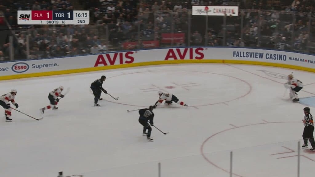 Early in the second period, with the Panthers up 1-0, things went sideways. Maple Leafs forward Zach Aston-Reese scored on a deflection after he was left wide open in front of the Panthers net.
