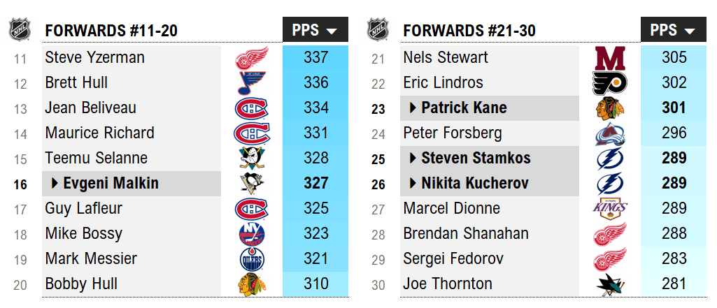To rank the best of all-time, my Hockey Hall of Fame methodology, the Pidutti Point Share System — PPS for short — will drive the list. By design, the model ignores off-ice impact, fame, or intangibles. Instead, it focuses exclusively on a player’s on-ice impact over their NHL career, relative to era. Full stop. PPS exists as a starting point for discussion. It’s delivered empirically to create a level playing field, reducing the noise around player perception or legacy.