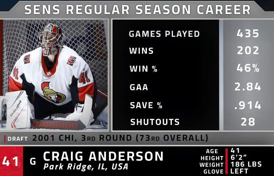 You also have to think, can Craig play 30 games or more if needed? I don’t know how this is going to go but if this is the end of the road for Craig Anderson, what a career, what a friend, what a teammate.