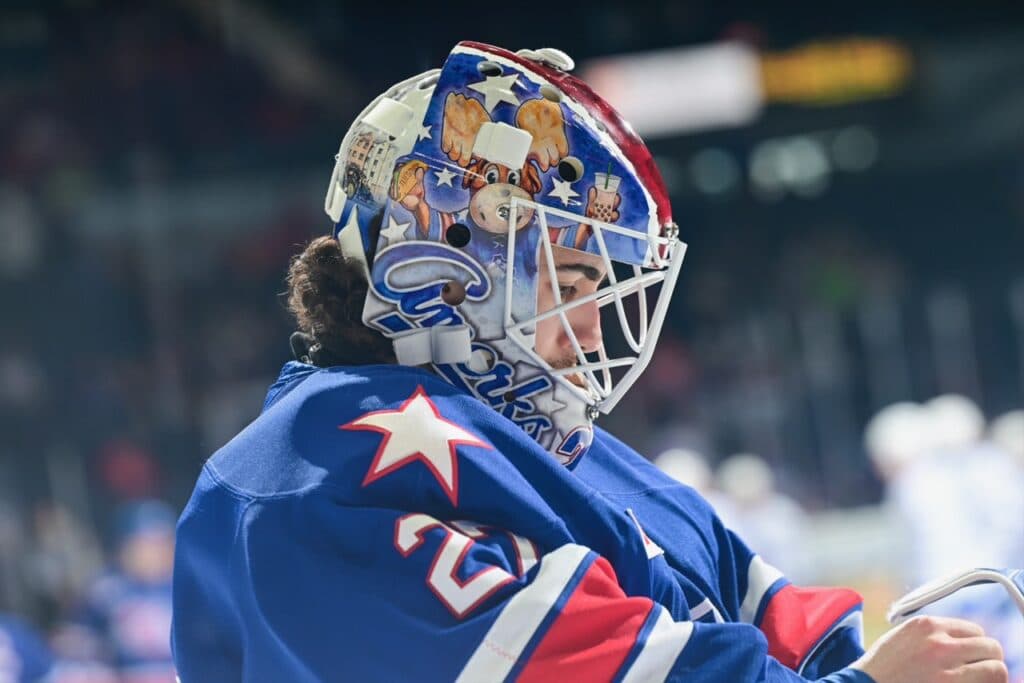Front and center will be Rochester goalie Devon Levi and one of the most interesting and hilarious masks we’ve seen in a while.