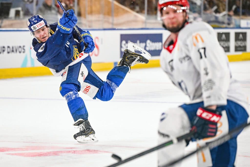 Davos eventually took the lead at 26:43. After Klas Dahlbeck’s shot was stopped, 39-year-old Andres Ambuhl tapped in the rebound, beating Roope Taponen for the 2-1 goal.