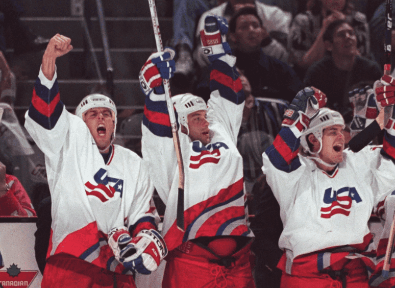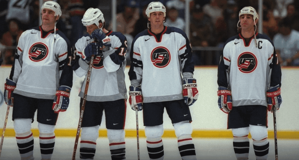 Many are hilariously bad, like the New York Islanders fisherman jersey and the L.A. Kings burger king jersey, but there are also quite a few that are incredible. One that stands out from this era is the uniform that the United States rocked when they won the 1996 World Cup of Hockey.