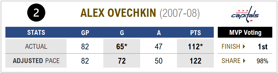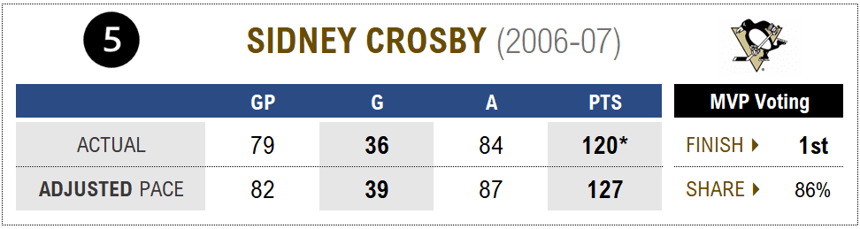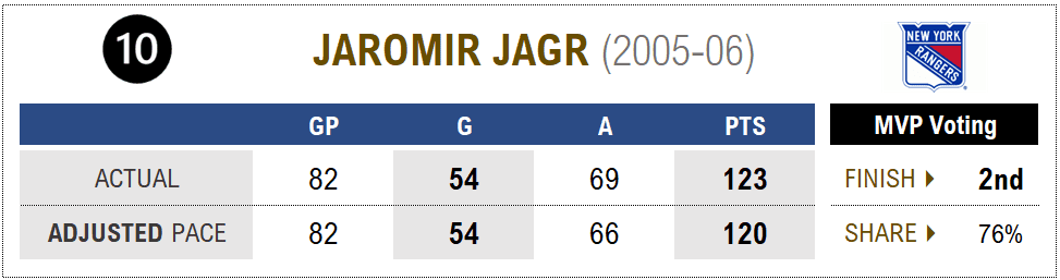 - Joe Thornton (2005-06) — Adjusted Pace: 29/93/122; MVP: 1st (82%); Hart & Ross