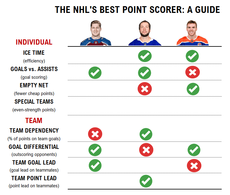 From ice time, to goals vs. assists, to empty net points, to even-strength output, to team-specific considerations, we’re diving into everyone’s favorite crown in search of answers.