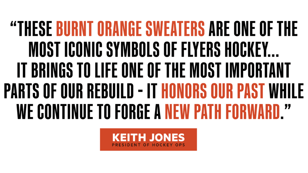 — Philadelphia Flyers (@NHLFlyers) June 20, 2023The Flyers of 2023 will put their unique spin on the uniform by doing away piping of the original “burnt orange” jerseys in favor of a sleeker look. “These new uniforms represent that sentiment perfectly with details to honor previous eras paired with a fresh, modern design,” said team chairman Dan Hilferty