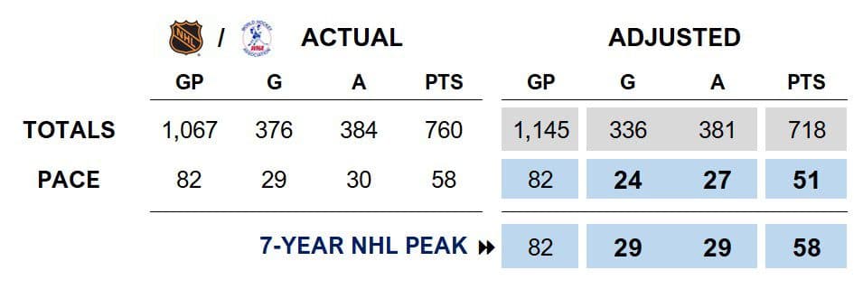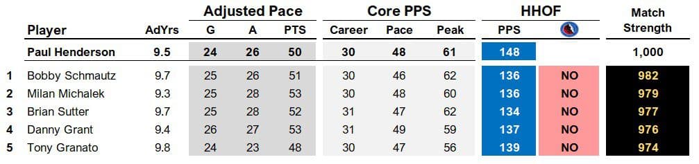 Respectfully, Henderson’s PPS score is not near the point that HHOF conversations begin. The standard is 235. A score of 215 is considered Hall of Very Good, warranting discussion. Henderson is at 148. The notable caveat is the five years he spent in the WHA in his 30s, amassing 283 points. If we tack on his WHA seasons, we can get Henderson’s PPS up to 163. For context, this is longtime Dallas forward Brenden Morrow’s score.