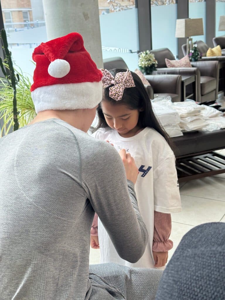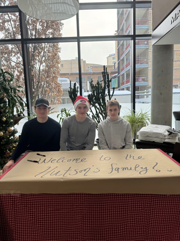 Very quietly over the holidays, brothers Lane, Quinn and Lars (Cole was with the USA juniors) along with parents Julie and Rob, spent Christmas Eve at Ronald McDonald House in Montreal hosting a private meet & greet for everybody there, bringing ‘Hutson’s Heroes’ shirts for the kids along with Hush weighted blankets and Bauer mini sticks for the kids and families.