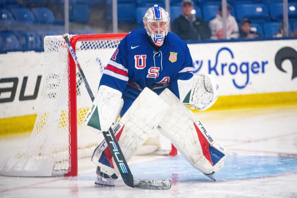 George’s game is built around just keeping things steady and relaxed in the crease, and that’s why he was listed as one of the top goaltenders all year long. At 6-foot-1, George is also on the smaller side, but he’s as confident as they come in this year’s class. Let in a bad goal? He’s going to rob you on your next chance. Nothing seems to bother him, and he also sees through traffic well for a smaller keeper. I thought George was great at the U-18s, especially in the medal round, even if the stats might not fully reflect it. From a skill perspective, he’s clean, and I think he’s got a real chance of being an NHL goaltender one day.