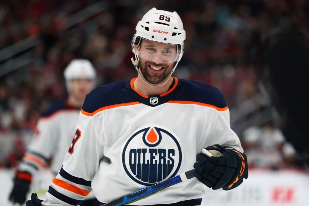 Nov 24, 2019; Glendale, AZ, USA; Edmonton Oilers center Sam Gagner (89) against the Arizona Coyotes at Gila River Arena. Mandatory Credit: Mark J. Rebilas-USA TODAY Sports