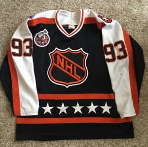 MATT LARKIN: Maybe we’ll all lean toward whichever getup brings about the most nostalgic feelings. I think back to sitting in my parents’ unfinished basement, watching last-minute injury replacement Mike Gartner bury four goals in the 1993 All-Star Game. The 1993 uniform was consistent with the scheme dating back to the 1980s: NHL shield colors, lots of stars, just a fun design honoring the league itself. Still my favorite despite the fact I love the latest ones.
