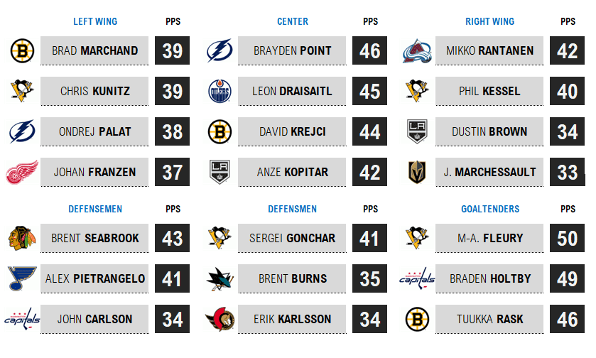 The Obvious: Crosby, Malkin, Toews, and MacKinnon down the middle have combined for 10 Cups and four Conn Smythe Trophies. Have fun matching up against those four centers. Kucherov, Kane and five-time Cup finalist Hossa headlining the right wingers seems about right.