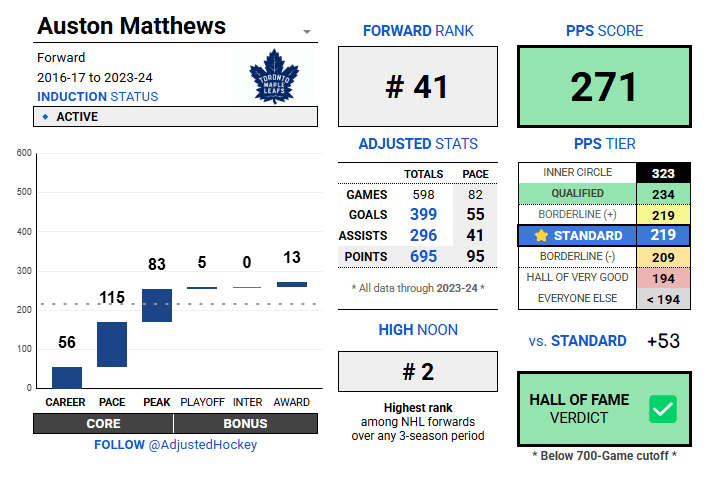 Visit adjustedhockey.com; data from Hockey-Reference, QuantHockey.com; international box scores from Wikipedia.