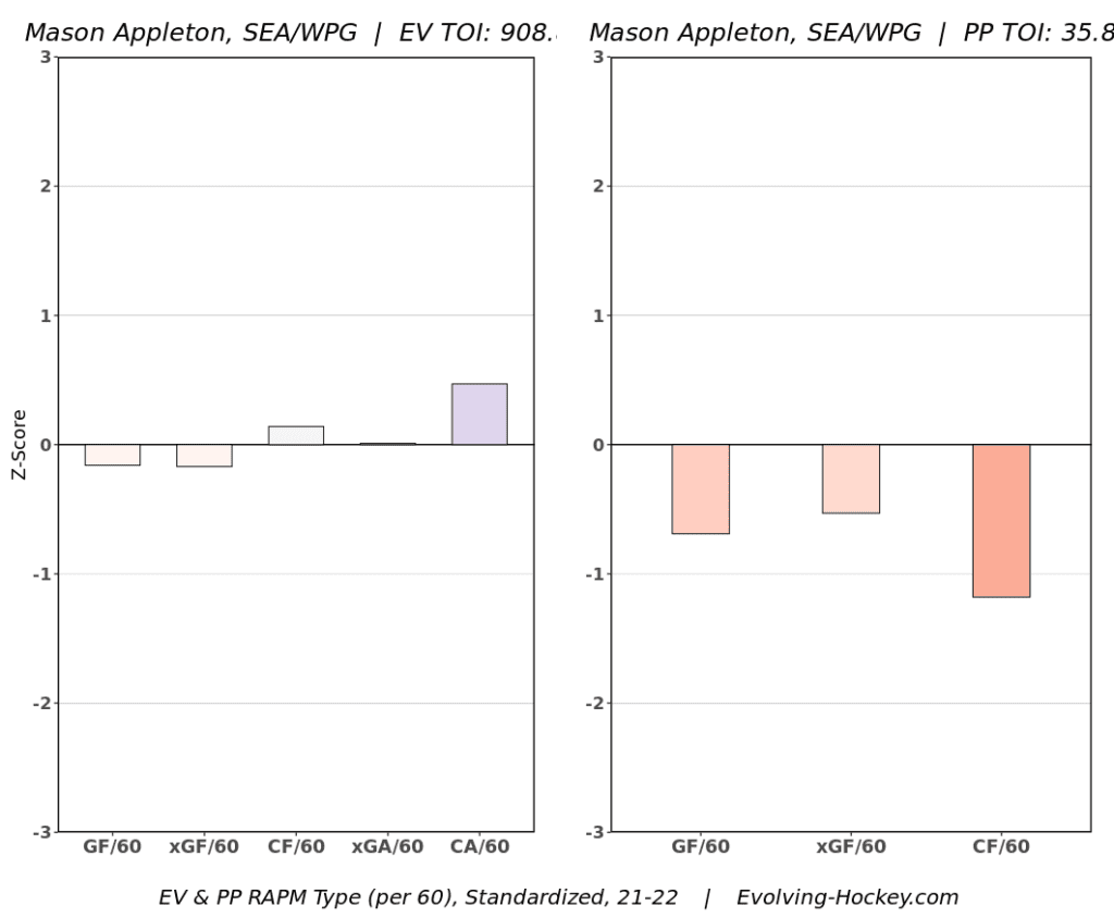 Appleton had a bit of a step back in 2021-22, with eight goals, 13 assists, and 21 points in 68 games this year, including just two goals, two assists, and four points in 19 games in his return to Winnipeg. It wasn’t too far off his career year in 2020-21, which saw him score 12 goals, 13 assists, and 25 points, but that came in just 56 games.