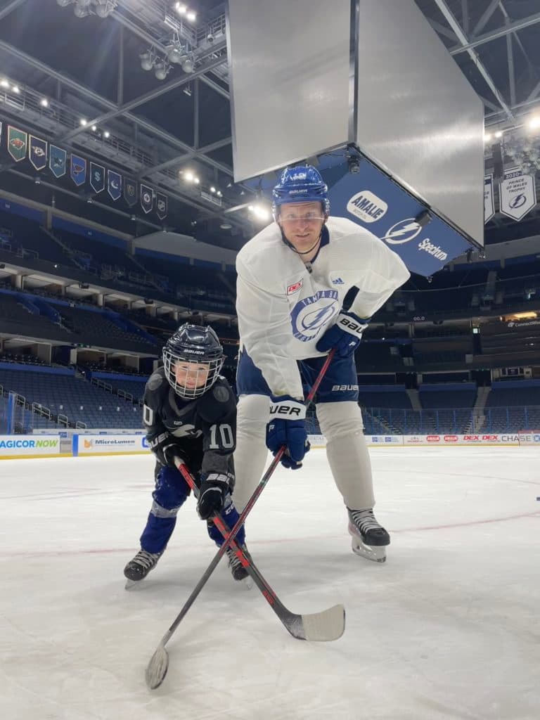 “He can’t get enough hockey,” Perry said, beaming ear-to-ear. “In the bubble, he didn’t really know. He just knew I was away playing hockey. Last year, he started to have a little idea – figuring out who the teams are. This year, he’s playing hockey, he’s skating multiple times a week, every day when I come home from the rink, he wants to play and practise.”